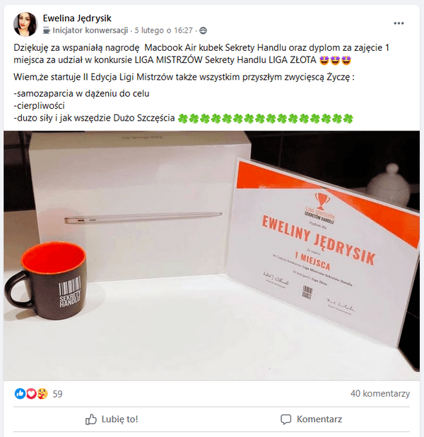 Publikuj co miesiąc swoje wyniki na grupie Sekrety Handlu VIP na Facebook'u, oraz wyślij je na maila konkurs@sekretyhandlu.pl (zgodnie z regulaminem).