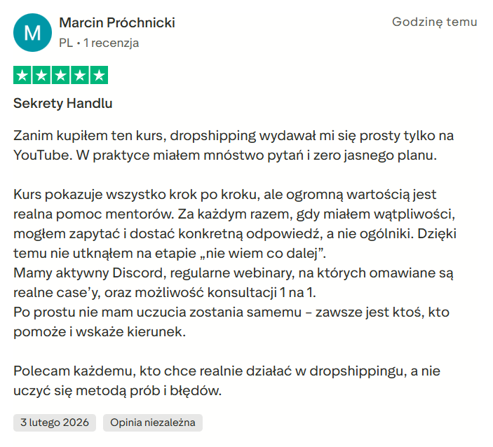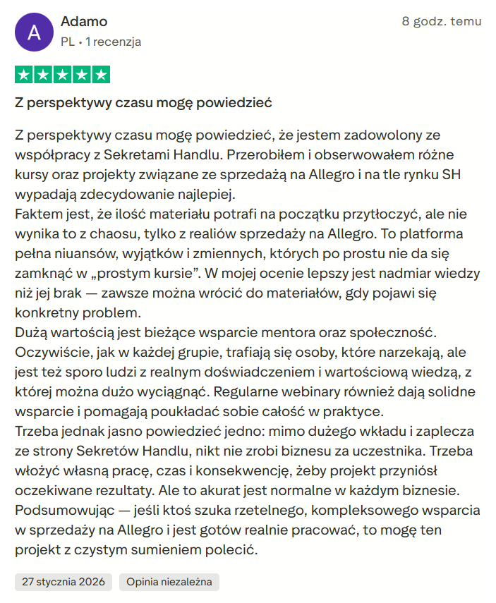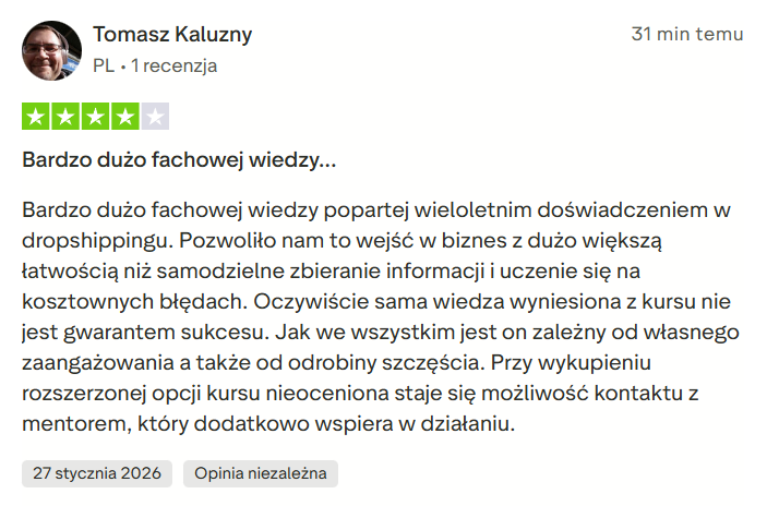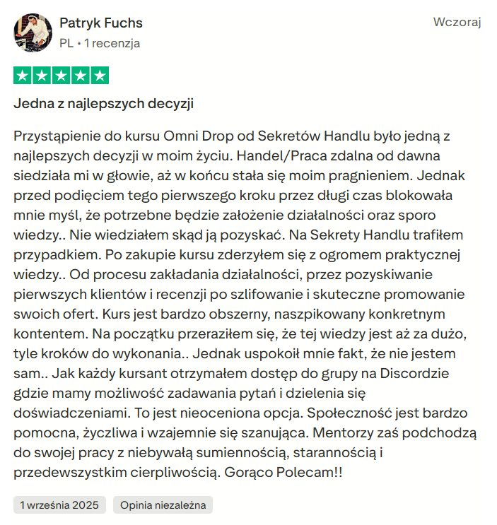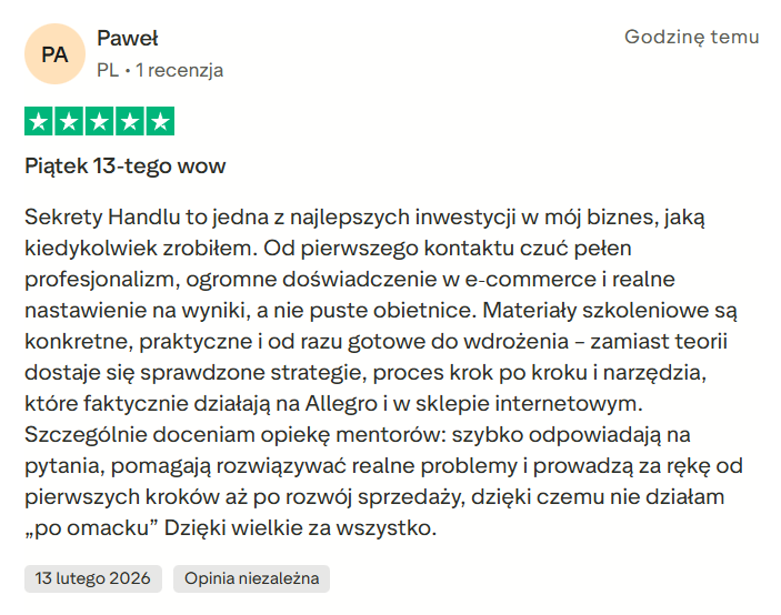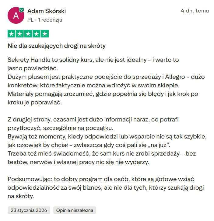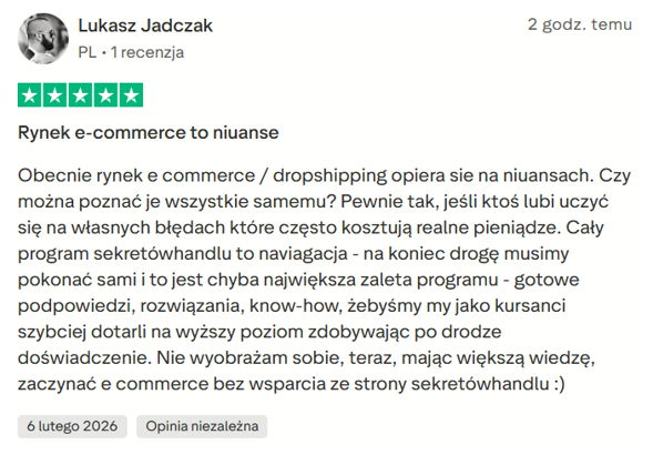 Karol to kolejny przykład osoby, która, mimo braku wcześniejszego doświadczenia w branży e-commerce, osiągnęła znaczące wyniki.