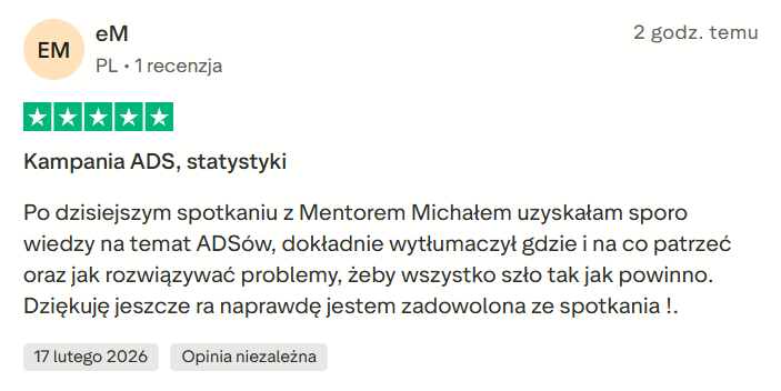 Współpraca z mentorem (Kamilem Zawistowskim, który ma ponad 21 lat doświadczenia w eCommerce i ponad 82 mln zł sprzedaży online) odegrała tu istotną rolę.