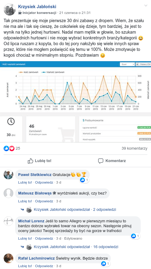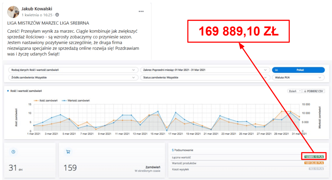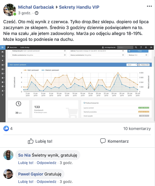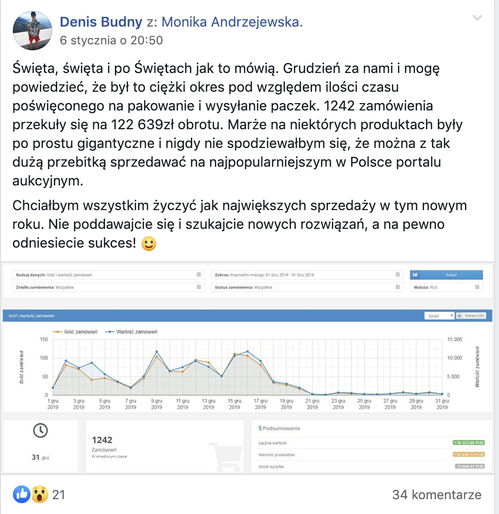 Człowiek, który w ciągu trzech lat sprzedał towary za kwotę kilku milionów złotych, zachowując zdrowy zysk na poziomie 25%.