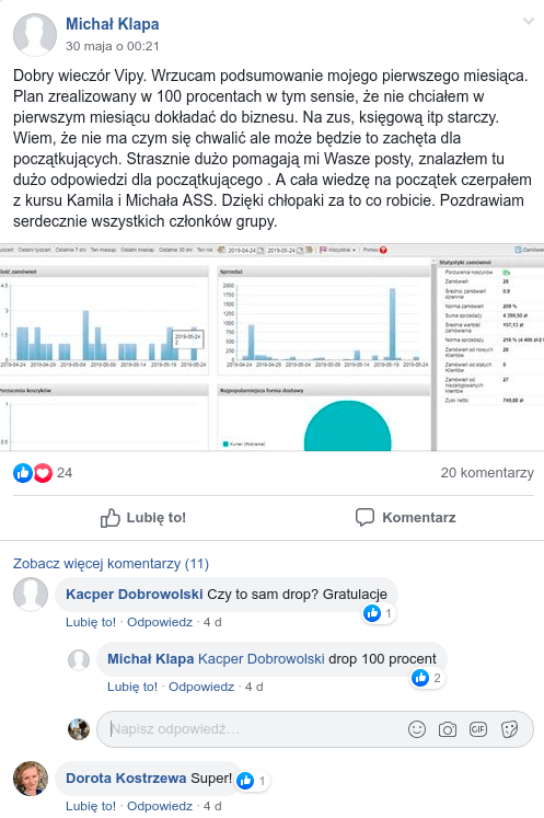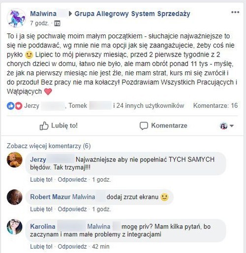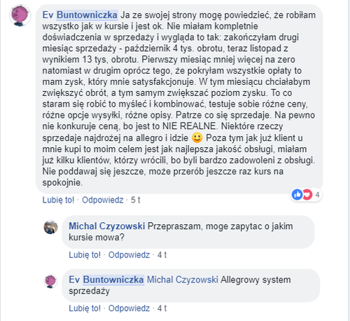 * Dostęp do kursu "100 pozytywnych komentarzy na Allegro w 7 dni", oraz do zamkniętej grupy VIP na Facebook'u, otrzymasz po 15 dniach (dla tych którzy z nami zostaną).