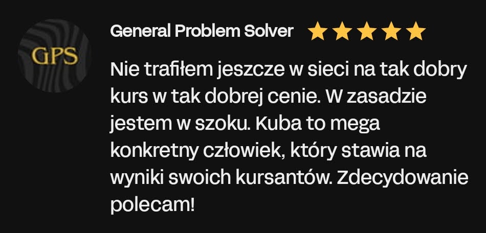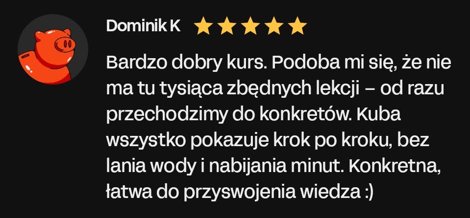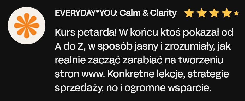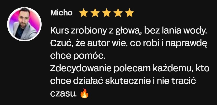 Wszystkie informacje zawarte na tej stronie stanowią osobistą opinię autora i mają charakter edukacyjny. Dołożyliśmy wszelkich starań, aby treść była rzetelna i wartościowa, jednak nie możemy zagwarantować żadnych konkretnych rezultatów wynikających z jej zastosowania. Pamiętaj, że prowadzenie działalności zarobkowej — w tym świadczenie usług, tworzenie stron internetowych czy sprzedaż online — zawsze wiąże się z ryzykiem. Również inwestycje w narzędzia, reklamę czy rozwój kompetencji mogą przynieść różne efekty w zależności od wielu czynników, m.in.: Twojego doświadczenia, umiejętności, branży, czasu poświęconego na wdrożenie materiału, zasobów, zaangażowania oraz sytuacji rynkowej. Przedstawione przykłady wyników są wyjątkowe i nie stanowią obietnicy osiągnięcia identycznych rezultatów. Możesz osiągnąć znacznie lepsze, podobne, słabsze lub… żadne rezultaty. Z tego względu nie ponosimy odpowiedzialności za Twoje decyzje, działania ani ich konsekwencje. Korzystając z tej strony i oferowanych produktów, akceptujesz powyższe warunki i bierzesz pełną odpowiedzialność za swoje decyzje.