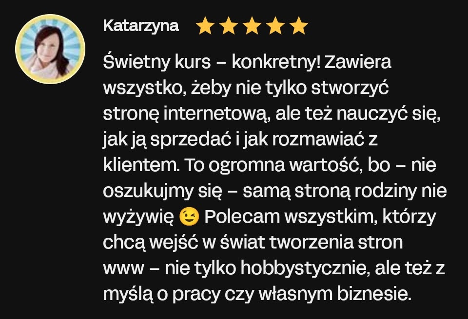 Moja gwarancja jest tak prosta jak tworzenie stron bez kodu czego uczę w kursach.