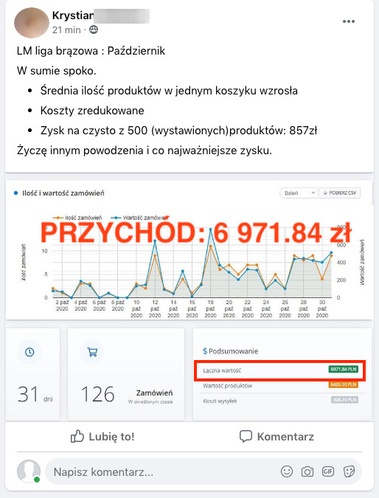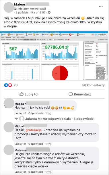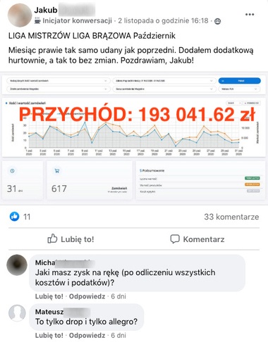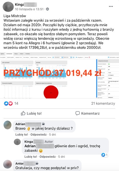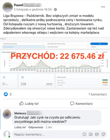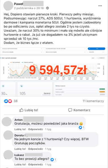 Człowiek, który w ciągu trzech lat sprzedał towary za kwotę kilku milionów złotych, zachowując zdrowy zysk na poziomie 25%.